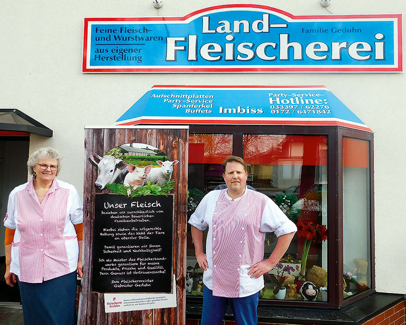 In Basdorf sorgen gleich zwei Fleischermeister für hochwertige hausgemachte Wurst- und Schinkenspezialitäten. In der Landfleischerei von Markus Geduhn und Martin Geduhn kann man dabei auf eine Vielzahl überlieferter Rezepte zurückgreifen, schließlich sind die beiden Brüder in mittlerweile dritter Generation tätig. Das angebotene Fleisch stammt von Tieren aus kontrollierter Aufzucht. Je nach Saison umrahmen Geflügel oder lecker eingelegtes Grillfleisch das Sortiment. Immer ein Hit sind die selbst hergestellten Salate. Der Partyservice sorgt dafür, dass jede Feier ein Erfolg wird.